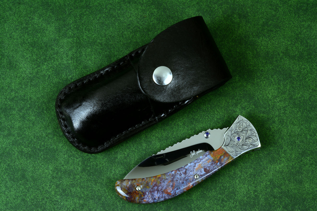 faceted blue amethyst gemstones. I put thumb studs on both sides of the blade